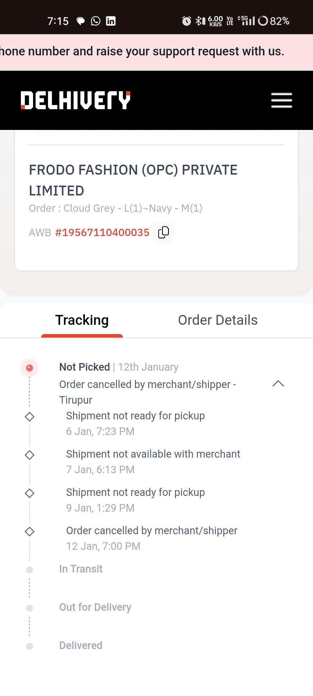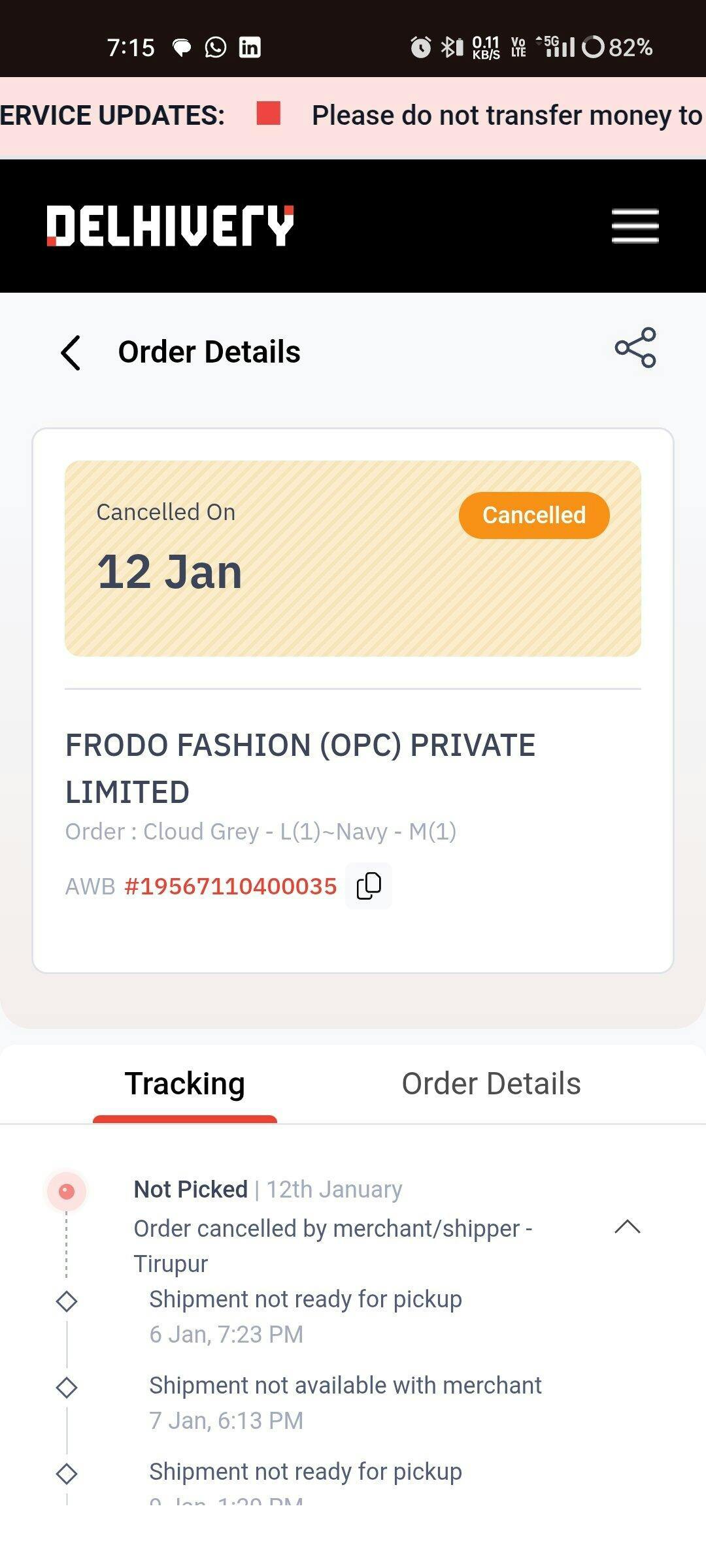 There was no information sent by the brand, I found out that it's cancelled through the delhivery app.