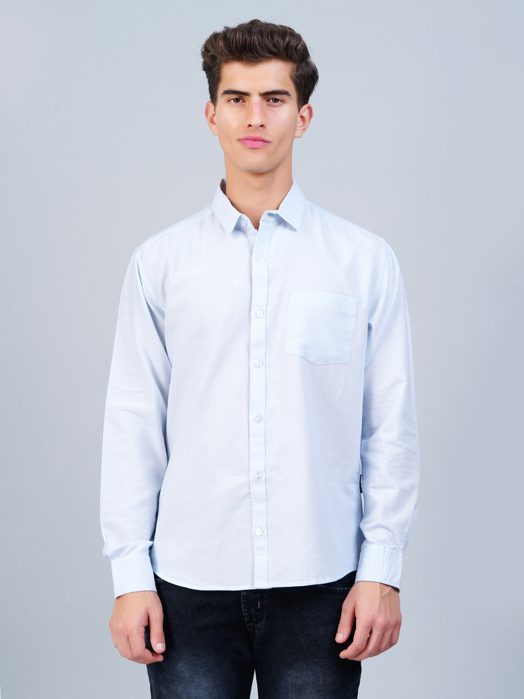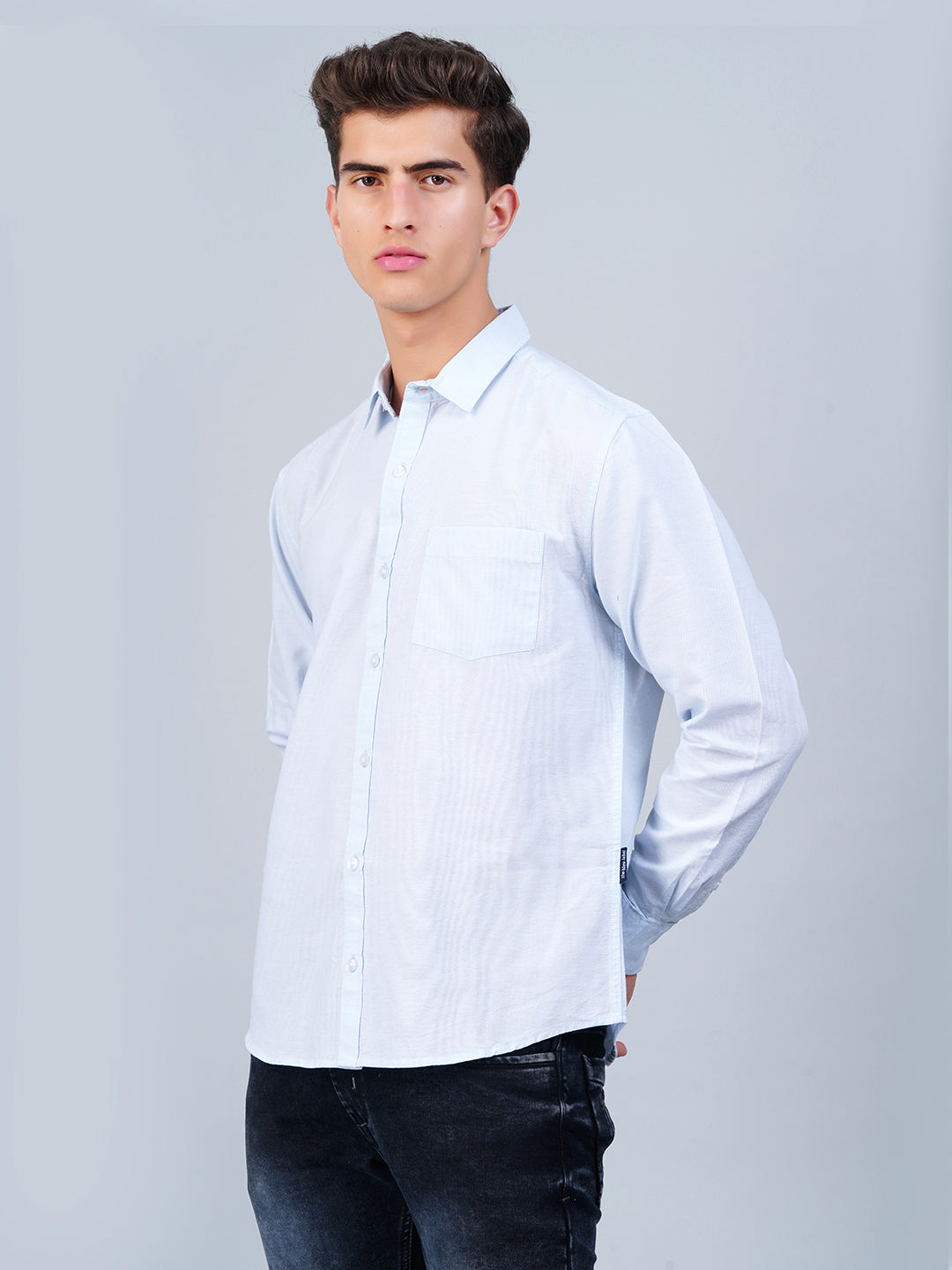Stay sharp and comfortable in our Light Blue Cotton Shirt – a timeless essential that works for any occasion. Made from breathable fabric with a soft touch, it keeps you looking crisp all day. Featuring a smart collar, full sleeves, and a tailored fit, this shirt pairs effortlessly with denim or chinos for a polished yet casual vibe.