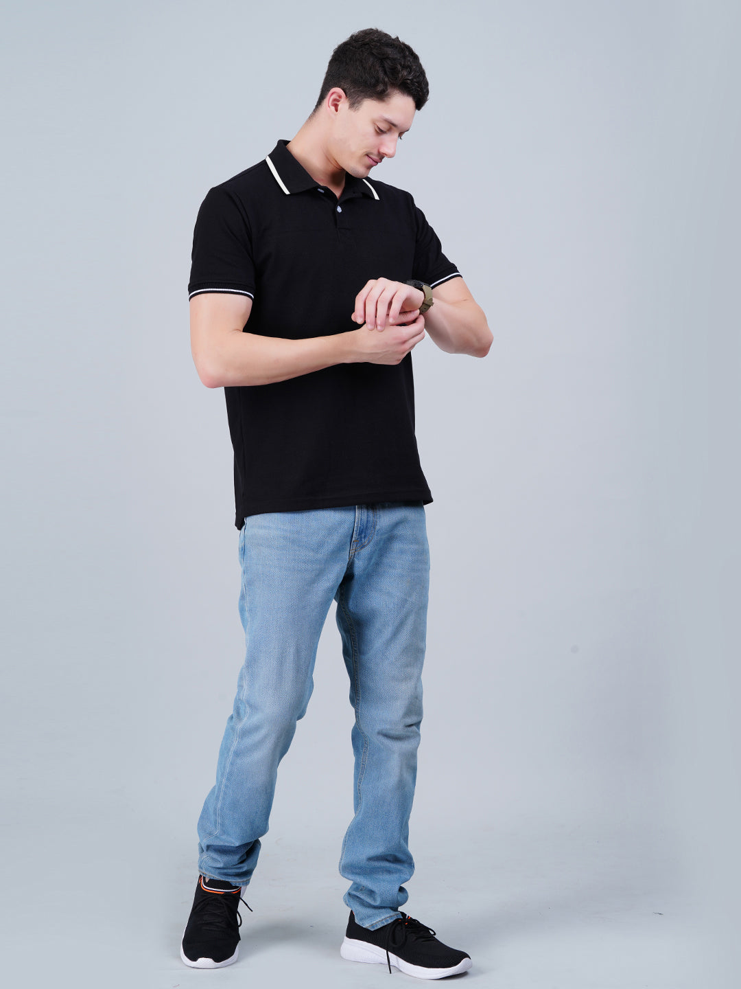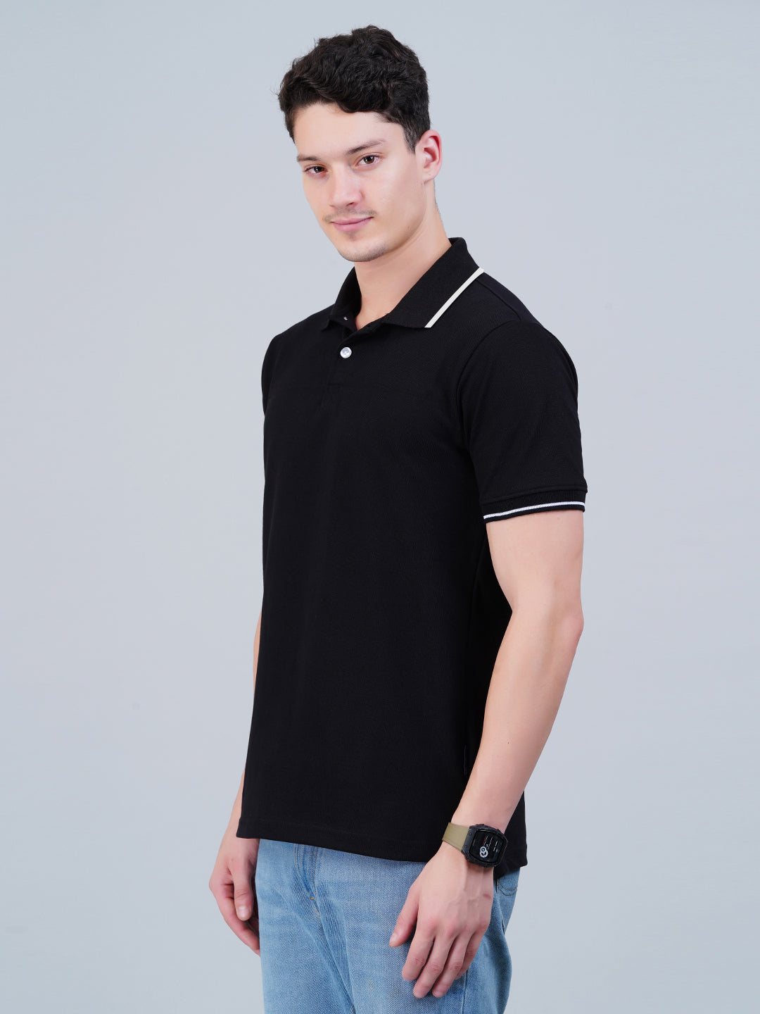 Understated, sharp, and versatile—the Midnight Edge Polo is your go-to essential for an effortlessly polished look. Crafted from durable pique cotton, this jet-black polo features clean white tipping on the sleeves and collar, giving it a crisp contrast that stands out. Whether you're dressing for a casual Friday at work or a night out, this tee strikes the perfect balance between smart and relaxed.