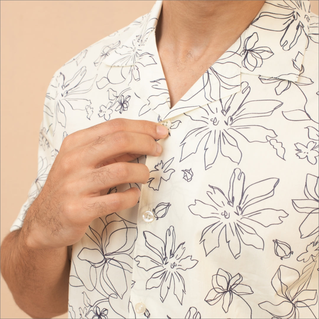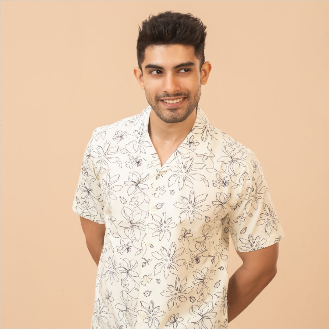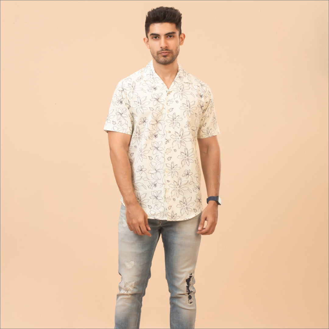 "Experience the timeless charm of our Pure Essence white print shirt. This shirt boasts a clean, crisp design, ideal for any occasion. Its versatile style makes it a staple in any wardrobe, offering a fresh, modern look that pairs effortlessly with any outfit."