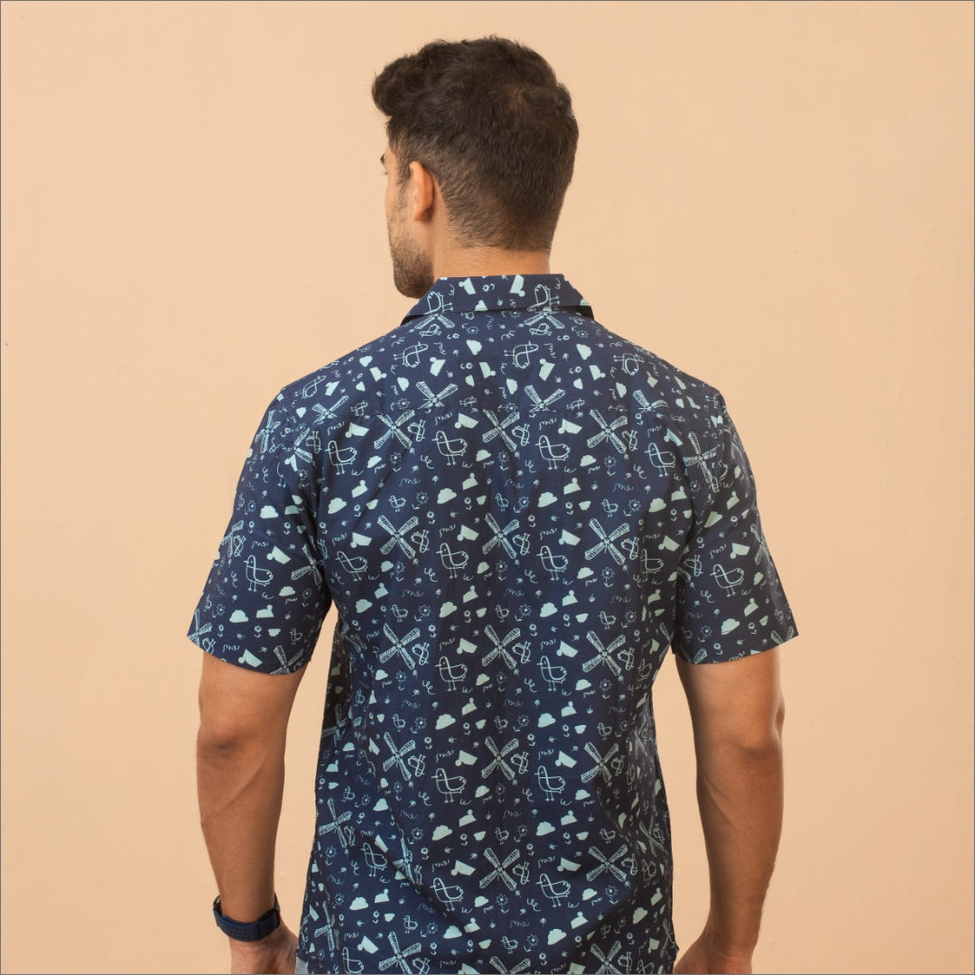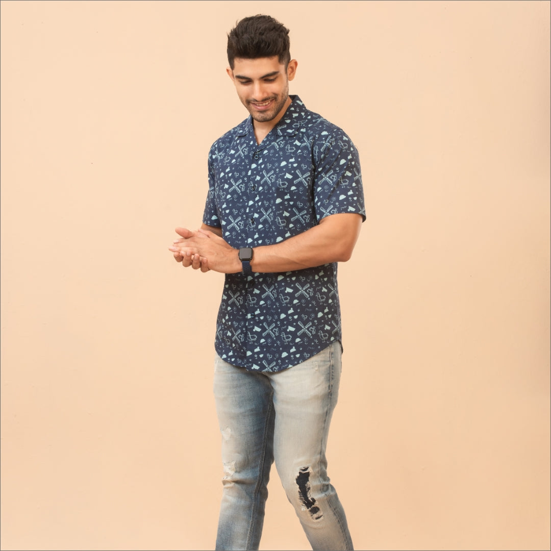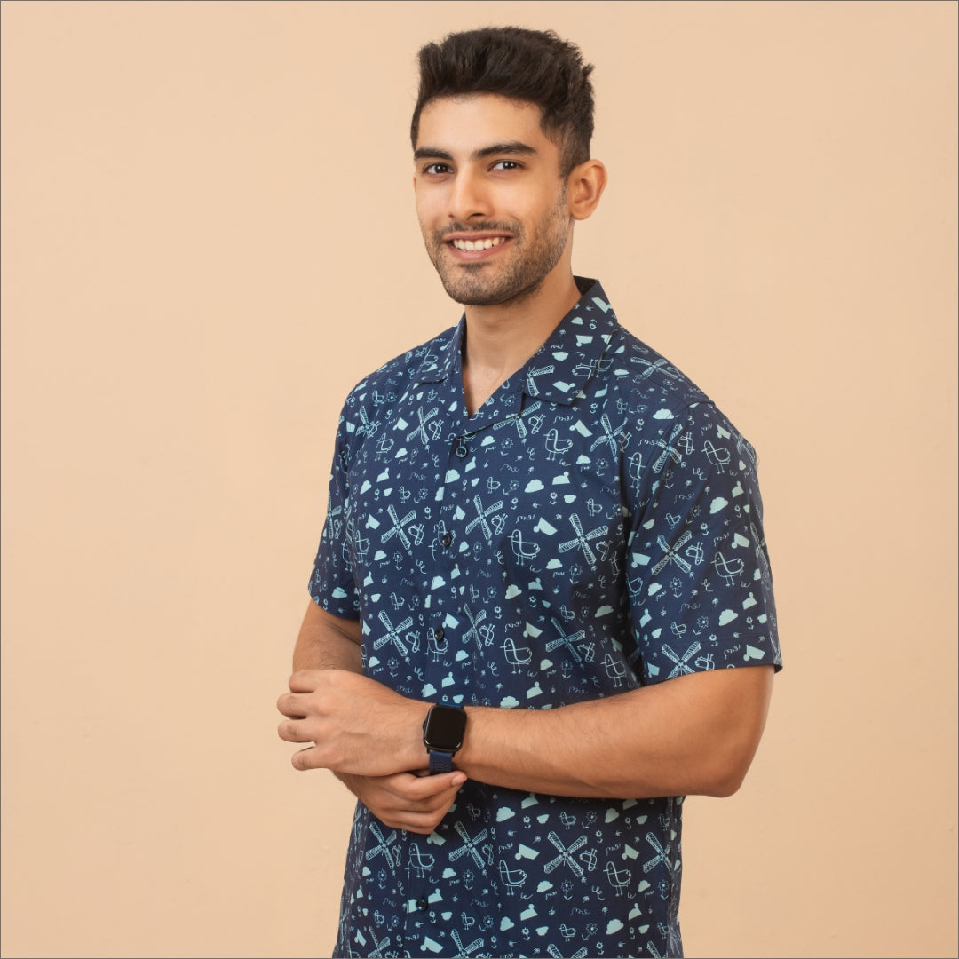 "Embark on a journey with our Starry Night navy print shirt. This design captures the essence of the deep blue sea, featuring intricate patterns that evoke the serenity of the ocean. Perfect for both casual outings and sophisticated gatherings, this shirt adds a touch of maritime elegance to your wardrobe."