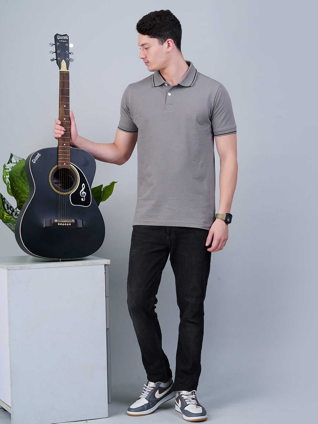 This Grey Anthem polo shirt features a classic solid grey design, crafted for a refined and versatile look. Its premium fabric ensures comfort and durability, making it ideal for both casual and semi-formal occasions. The tailored fit enhances your silhouette while maintaining ease of movement, reflecting expert attention to style and quality.